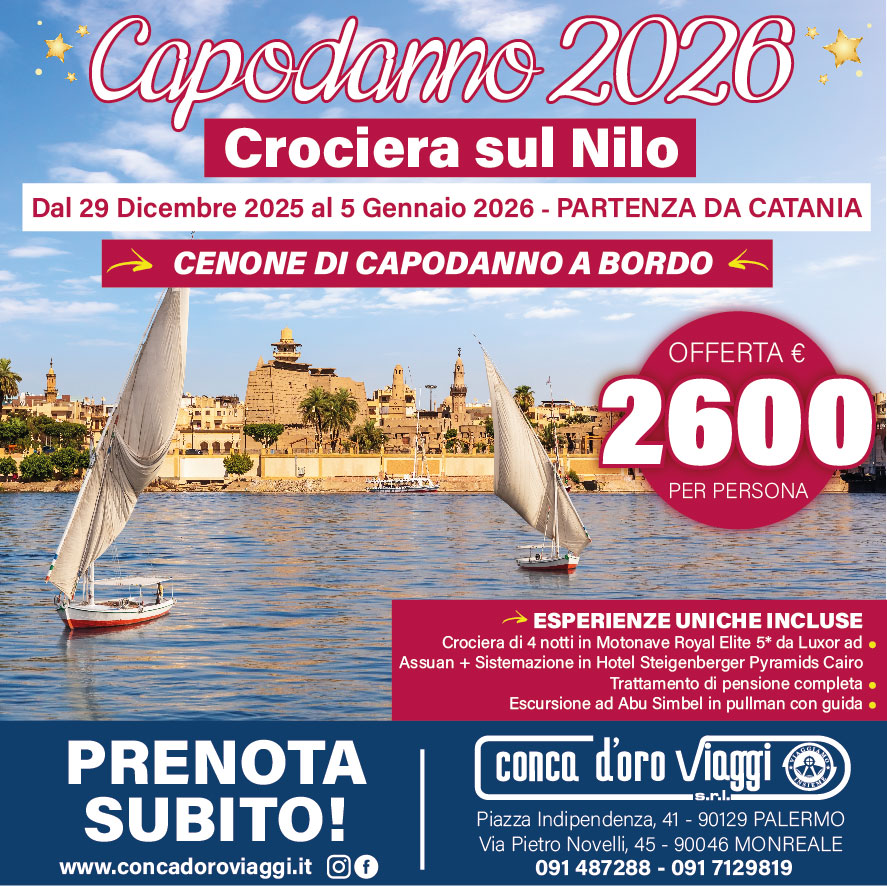 PARTENZA SPECIALE DA CATANIA - CENONE DI CAPODANNO A BORDO