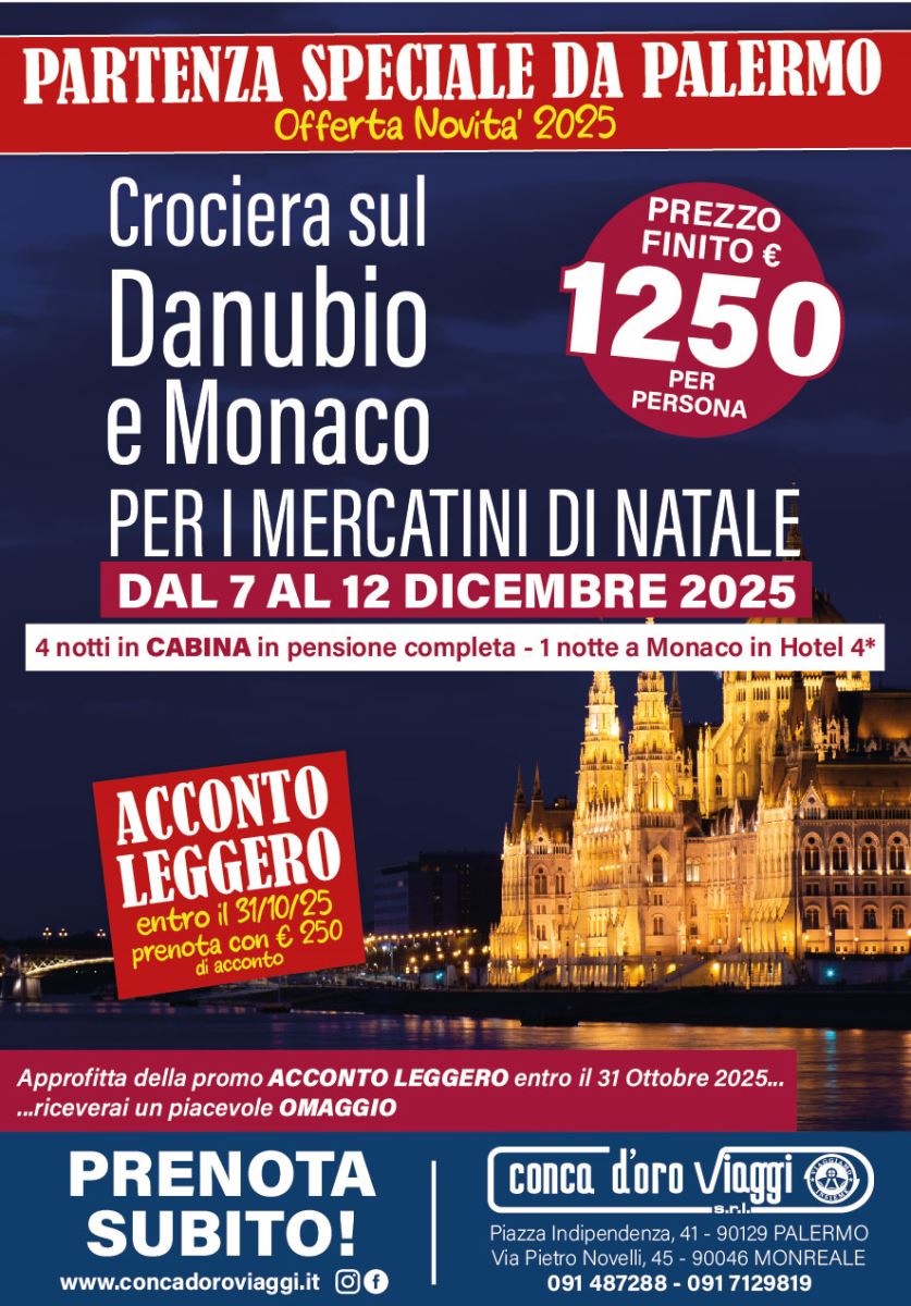 CROCIERA SUL DANUBIO E MONACO - Mercatini di Natale 2025 DAL 7 AL 12 DICEMBRE 2025 4 NOTTI DI CROCIERA IN CABINA + 1 NOTTE A MONACO IN HOTEL 4*