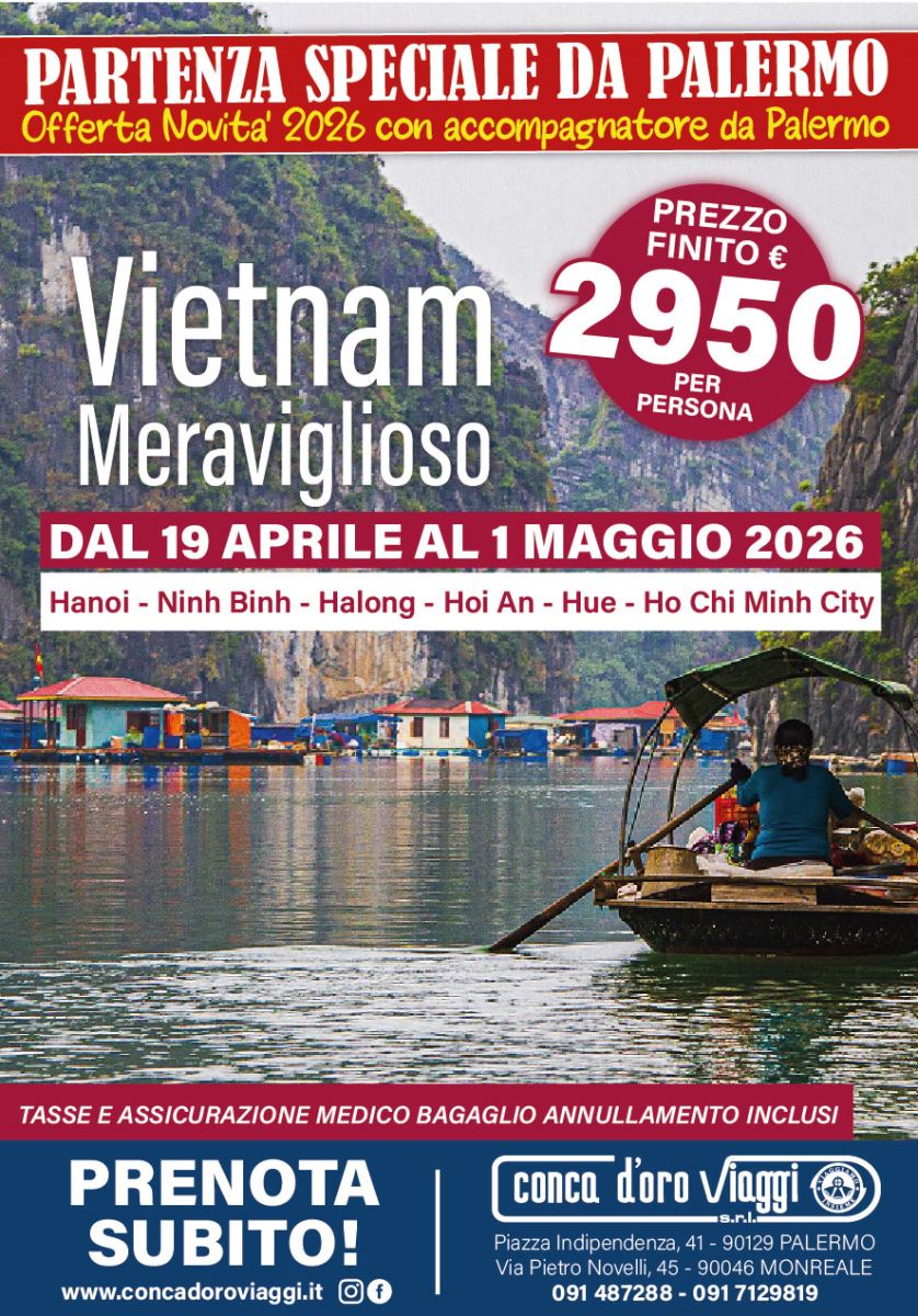 SPECIALE VIETNAM 2026 DAL 19 APRILE AL 1 MAGGIO 2026 PARTENZA SPECIALE CON ACCOMPAGNATORE DA PALERMO