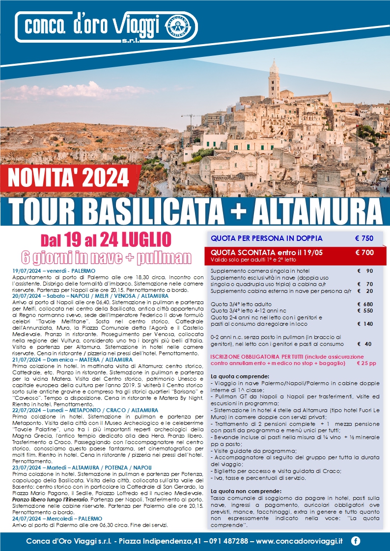 TOUR BASILICATA 2024 + ALTAMURA NOVITA' 2024